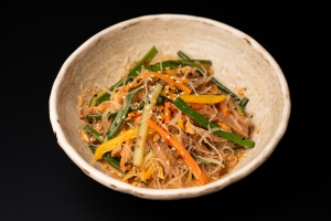 - Фунчоза, говядина, морковь св., перец св., лук перо, огурцы св., арахис жареный, кунжут, заправка фирменная.